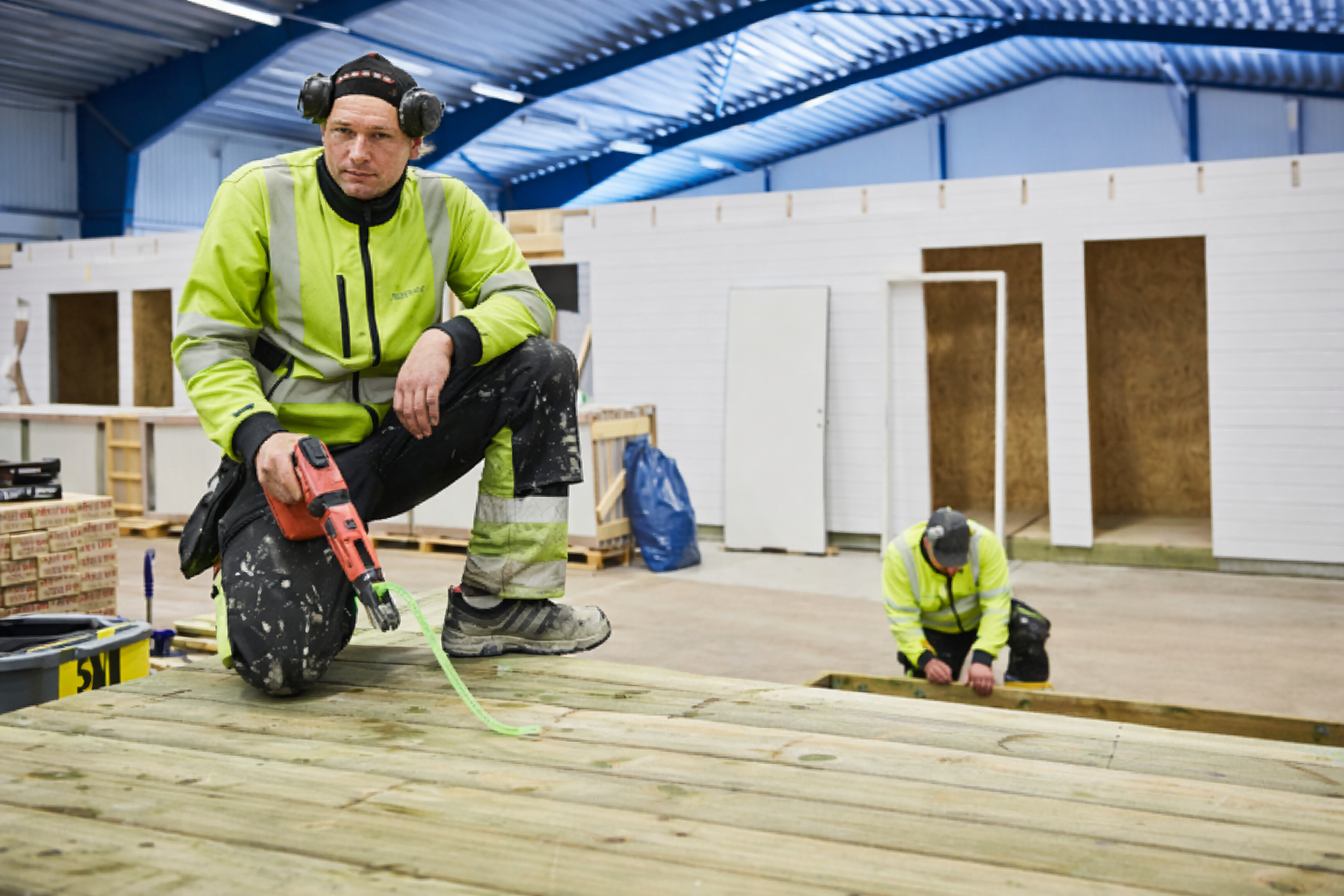 I vår moderna anläggning arbetar vårt dedikerade team med allt från att precisionstillverka husblock till att producera skräddarsydda takstolar och vidareutveckla våra produkter. Hela processen övervakas noga, och vi ser till att varje del av huset hålls torr under produktionen. Det är här teknik och hantverk möts i perfekt balans, och det skapar en grund av trygghet, en kvalitet som vi värdesätter högt.